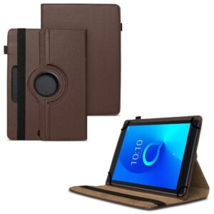 TGK 360 Degree Rotating Universal 3 Camera Hole Leather Stand Case Cover for Alcatel 1T 10 inch Tablet – Brown