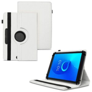 TGK 360 Degree Rotating Universal 3 Camera Hole Leather Stand Case Cover for Alcatel 1T 10 inch Tablet – White