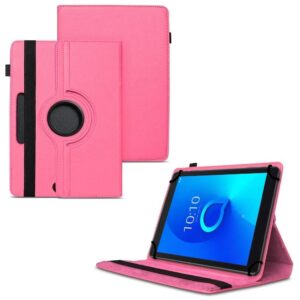 TGK 360 Degree Rotating Universal 3 Camera Hole Leather Stand Case Cover for Alcatel 1T 10 inch Tablet – Hot Pink