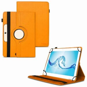TGK 360 Degree Rotating Universal 3 Camera Hole Leather Stand Case Cover for Acer One 10 T8-129L Tablet 10.1 Inch (Orange)