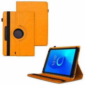 TGK 360 Degree Rotating Universal 3 Camera Hole Leather Stand Case Cover for Alcatel 1T 10 inch Tablet – Orange