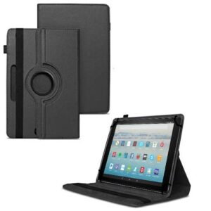 TGK 360 Degree Rotating Universal 3 Camera Hole Leather Stand Case Cover for Fire HD 10 Tablet – Black