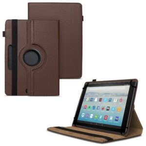 TGK 360 Degree Rotating Universal 3 Camera Hole Leather Stand Case Cover for Fire HD 10 Tablet – Brown