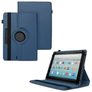 TGK 360 Degree Rotating Universal 3 Camera Hole Leather Stand Case Cover for Fire HD 10 Tablet – Dark Blue