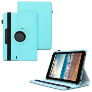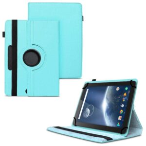 TGK 360 Degree Rotating Universal 3 Camera Hole Leather Stand Case Cover for Dragon Touch X10 Tablet 10.1 inch – Sky Blue