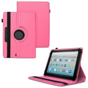 TGK 360 Degree Rotating Universal 3 Camera Hole Leather Stand Case Cover for Fire HD 10 Tablet – Hot Pink
