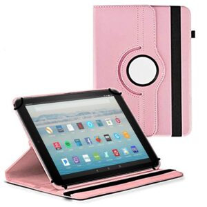 TGK 360 Degree Rotating Universal 3 Camera Hole Leather Stand Case Cover for Fire HD 10 Tablet – Light Pink