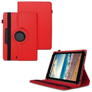 TGK 360 Degree Rotating Universal 3 Camera Hole Leather Stand Case Cover for Dell Venue 8 Tablet (8 inch)-Red