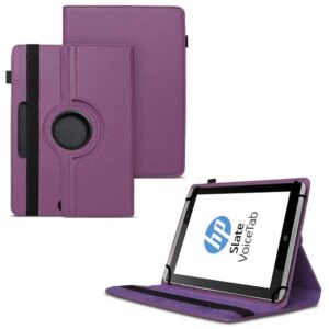 TGK 360 Degree Rotating Universal 3 Camera Hole Leather Stand Case Cover for HP Slate Tablet 8 inch-Purple