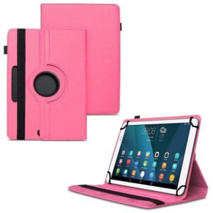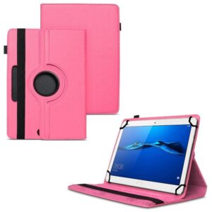 TGK 360 Degree Rotating Universal 3 Camera Hole Leather Stand Case Cover for Huawei MediaPad M3 Lite 10″ Tablet – Hot Pink