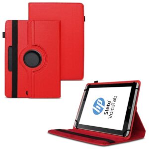 TGK 360 Degree Rotating Universal 3 Camera Hole Leather Stand Case Cover for HP Slate Tablet 8 inch-Red