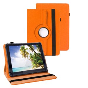 TGK 360 Degree Rotating Universal 3 Camera Hole Leather Stand Case Cover for iBall Slide Elan 3×32 Tablet (10.1 inch) – Orange