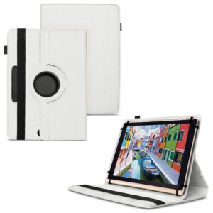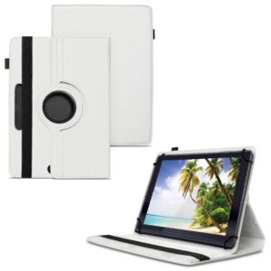 TGK 360 Degree Rotating Universal 3 Camera Hole Leather Stand Case Cover for iBall Slide Elan 3×32 Tablet (10.1 inch) – White