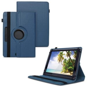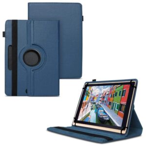 TGK 360 Degree Rotating Universal 3 Camera Hole Leather Stand Case Cover for iBall Slide Elan 3×32 Tablet (10.1 inch) – Dark Blue