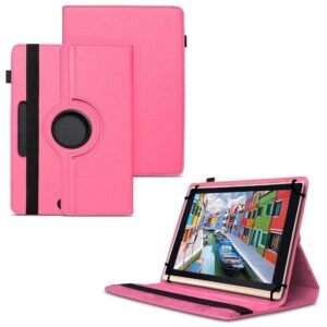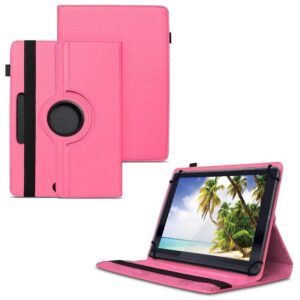TGK 360 Degree Rotating Universal 3 Camera Hole Leather Stand Case Cover for iBall Slide Elan 3×32 Tablet (10.1 inch) – Hot Pink