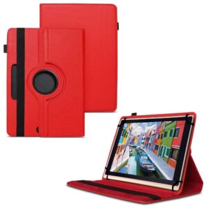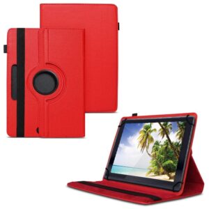 TGK 360 Degree Rotating Universal 3 Camera Hole Leather Stand Case Cover for iBall Slide Elan 3×32 Tablet (10.1 inch) – Red