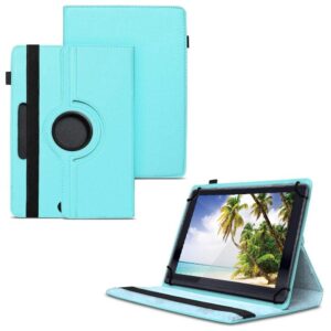 TGK 360 Degree Rotating Universal 3 Camera Hole Leather Stand Case Cover for iBall Slide Elan 3×32 Tablet (10.1 inch) – Sky Blue
