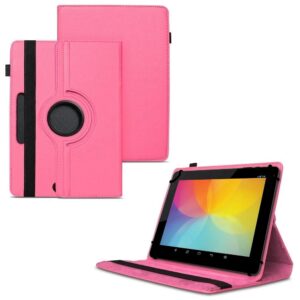 TGK 360 Degree Rotating Universal 3 Camera Hole Leather Stand Case Cover for Lenovo Tab 3 10 Business 10.1″ Tablet – Hot Pink