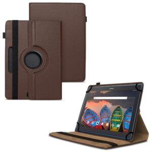 TGK 360 Degree Rotating Universal 3 Camera Hole Leather Stand Case Cover for Lenovo Tab X103F 10 inch – Brown