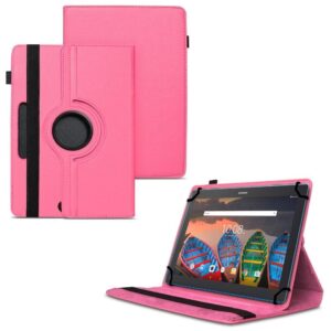 TGK 360 Degree Rotating Universal 3 Camera Hole Leather Stand Case Cover for Lenovo Tab X103F 10 inch – Hot Pink
