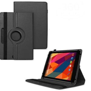 TGK 360 Degree Rotating Universal 3 Camera Hole Leather Stand Case Cover for Micromax Canvas P680 Tablet 8 inch -Black