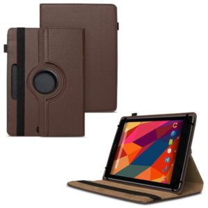 TGK 360 Degree Rotating Universal 3 Camera Hole Leather Stand Case Cover for Micromax Canvas P680 Tablet 8 inch-Brown