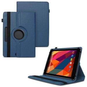 TGK 360 Degree Rotating Universal 3 Camera Hole Leather Stand Case Cover for Micromax Canvas P680 Tablet 8 inch -Dark Blue