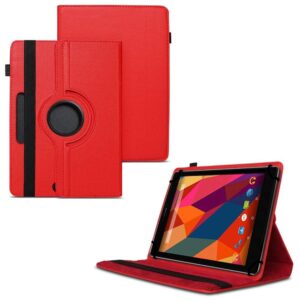 TGK 360 Degree Rotating Universal 3 Camera Hole Leather Stand Case Cover for Micromax Canvas P680 Tablet 8 inch -Red