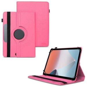 TGK 360 Degree Rotating Universal 3 Camera Hole Leather Stand Case Cover for Oppo Pad Air 10.36 inch Tab (Hot Pink)