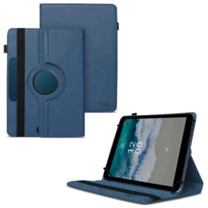TGK 360 Degree Rotating Universal 3 Camera Hole Leather Stand Case Cover for Nokia T10 8 inch Tablet (Dark Blue)