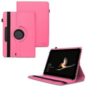 TGK 360 Degree Rotating Universal 3 Camera Hole Leather Stand Case Cover for Microsoft Surface Go (10 inch) Tablet – Hot Pink